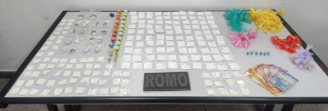 Ao perceber a aproximação da viatura, o homem tentou fugir e não acatou as ordens de abordagem, sendo necessário contê-lo. Com o suspeito foram encontrados entorpecentes e R$ 275.