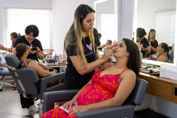 Durante o encontro, as futuras mães participaram de uma roda de conversa com orientações sobre saúde materno-infantil, compartilharam experiências e receberam informações das equipes das unidades de saúde. O evento ainda contou com um momento de cuidado pessoal, com maquiagem e registro fotográfico profissional, celebrando essa fase tão significativa.