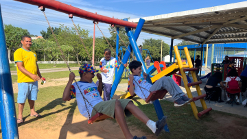 A programação contou com atividades adaptadas, brincadeiras, jogos esportivos e brinquedos infláveis, garantindo acessibilidade e participação coletiva. Também foram oferecidos pipoca, lanche e momentos de interação entre as famílias, promovendo um ambiente acolhedor.